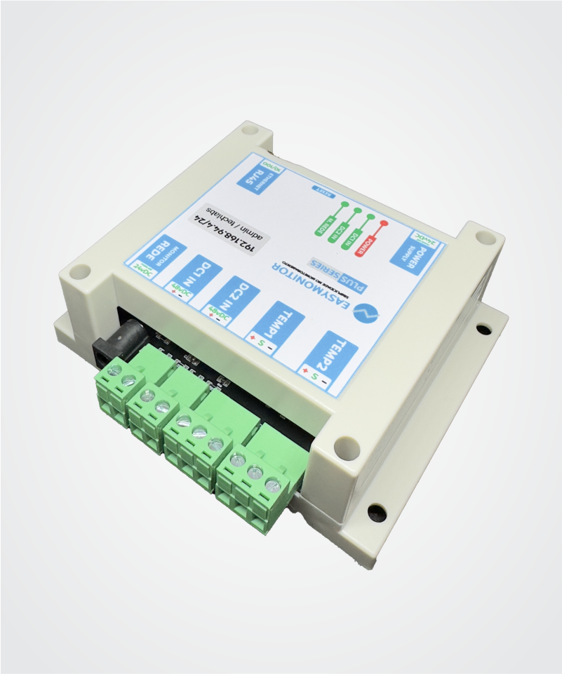 O EasyMonitor Plus V2 é um dispositivo versátil projetado para o monitoramento remoto de ambientes críticos, oferecendo conectividade SNMP, API REST e MQTT, além de uma interface web intuitiva para configuração e visualização dos dados.