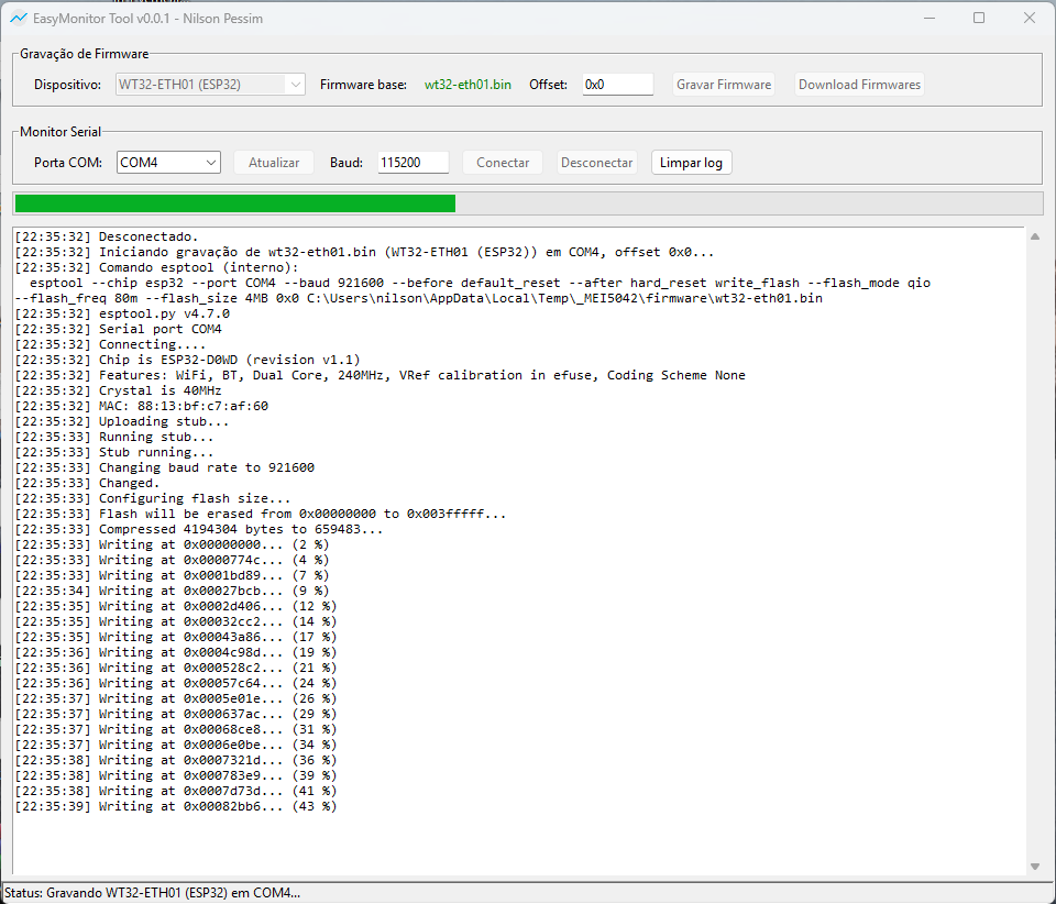 Ferramenta oficial para gravação de firmware base nos dispositivos EasyMonitor e visualização de logs via Serial Monitor.