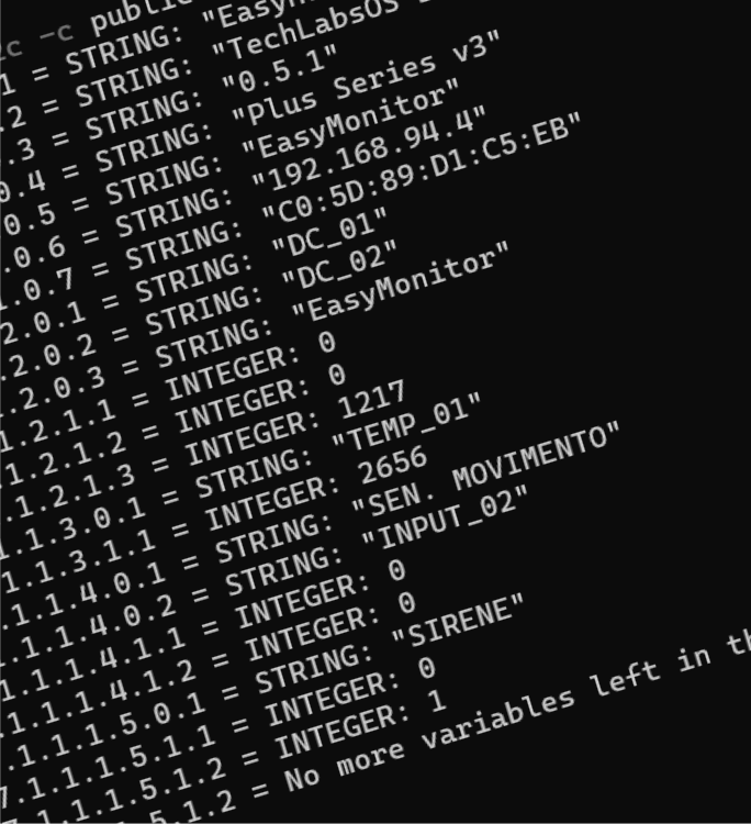 TechLabsOS é a plataforma proprietária desenvolvida pela TechLabs Technology para os dispositivos da linha EasyMonitor. Projetado para garantir estabilidade, integração nativa com SNMP, MQTT e API REST, o sistema foi concebido para operação contínua em ambientes críticos.